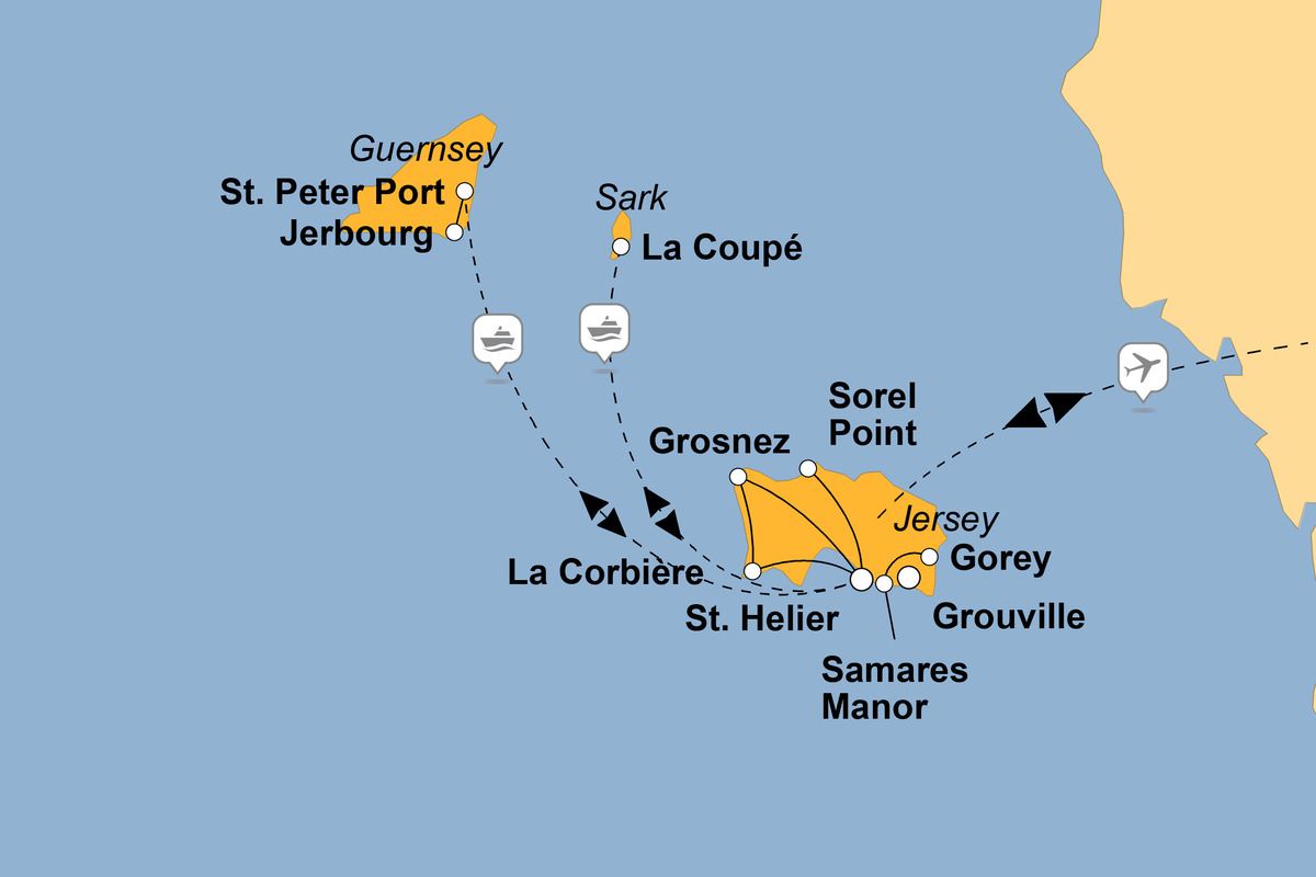 - Tagesausflüge zu den Schwesterninseln Sark und Guernsey inkl.